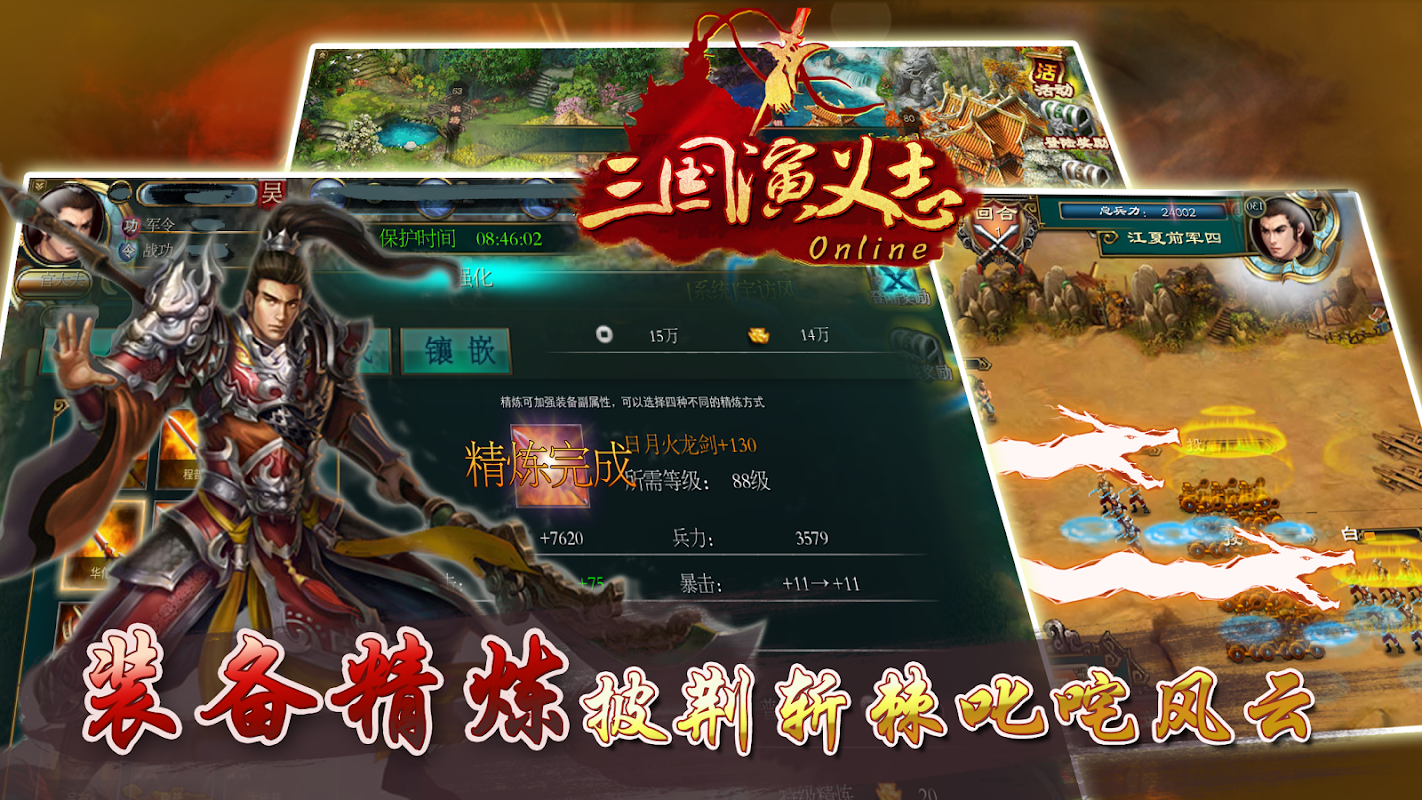 升级装备是武将取得战功的特点之一,装备越高级越能以小损失得大胜利!装备打造除了基本的升级强化,还具有精炼、合成等多种锻造装备的功能。一定让您不断提升兵将的实力,快速实现称霸一方的梦想。