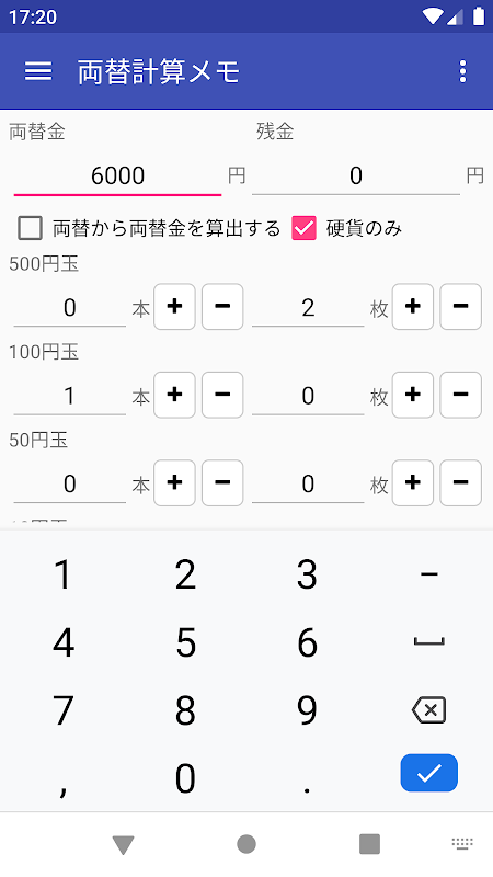 両替計算メモ:両替金と現金残高計算を素早く簡単に行えます! 2.0.0