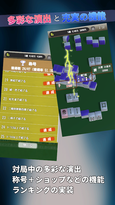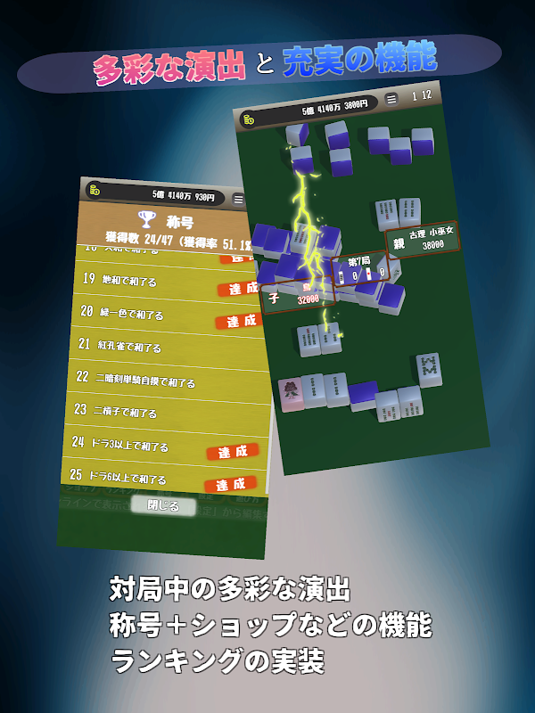 - เนื่องจากมีโหมดช่วยเหลือ แม้แต่ผู้เริ่มต้นเล่นไพ่นกกระจอกที่ไม่รู้จักไพ่นกกระจอกก็สามารถสนุกกับมันได้