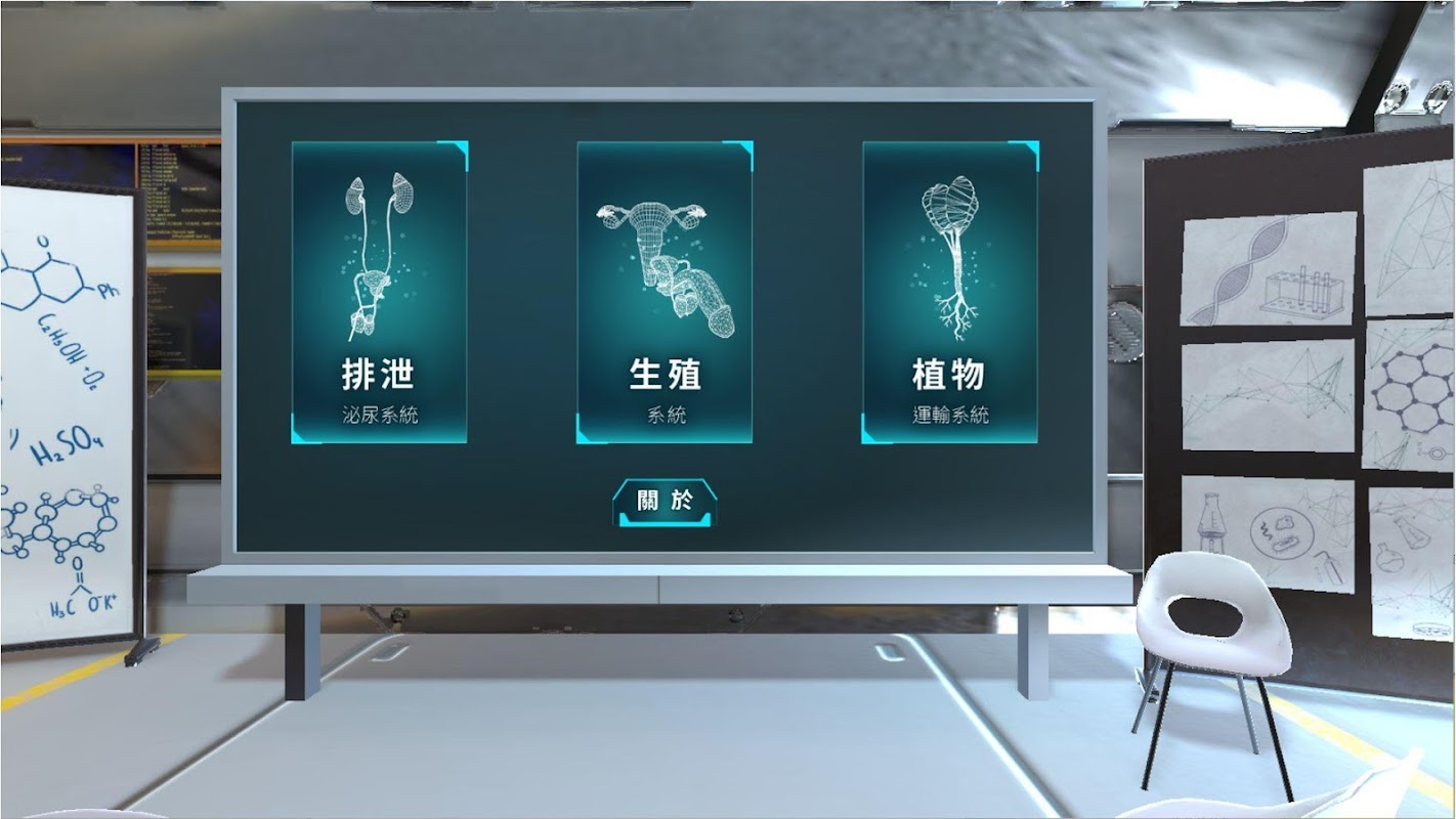 使用VR虛擬實境搭配人體排泄泌尿系統、生殖系統、植物運輸系統的數位學習教材,跳脫傳統式教學,將生硬的2D圖片轉換成3D擬真學習環境,輔助學生基礎生物的學習。