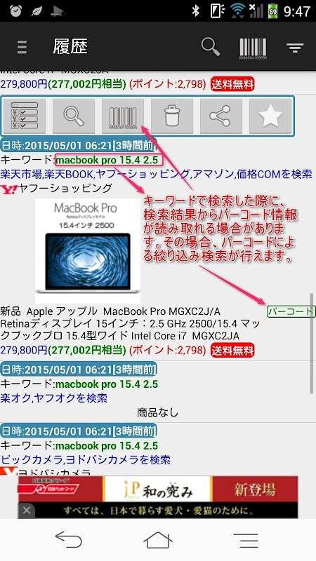 ・バーコード検索や音声検策ですぐに安い商品が探せます
