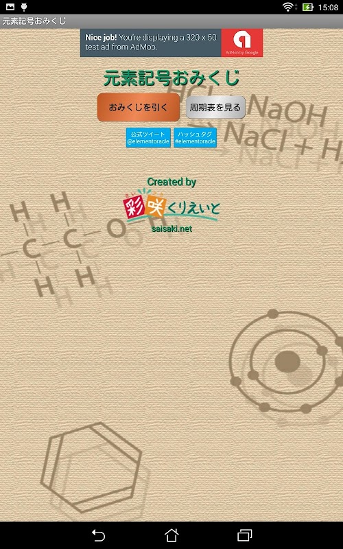 これまで引いたおみくじの元素は、周期表上で赤く表示されるので、どれぐらいの種類の元素を引いたかがわかります。
