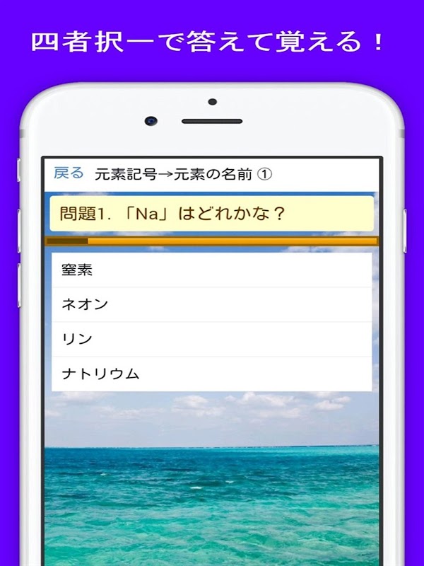 元素記号、化学式、化学反応式をクイズ形式で楽しく覚えられる無料アプリです。