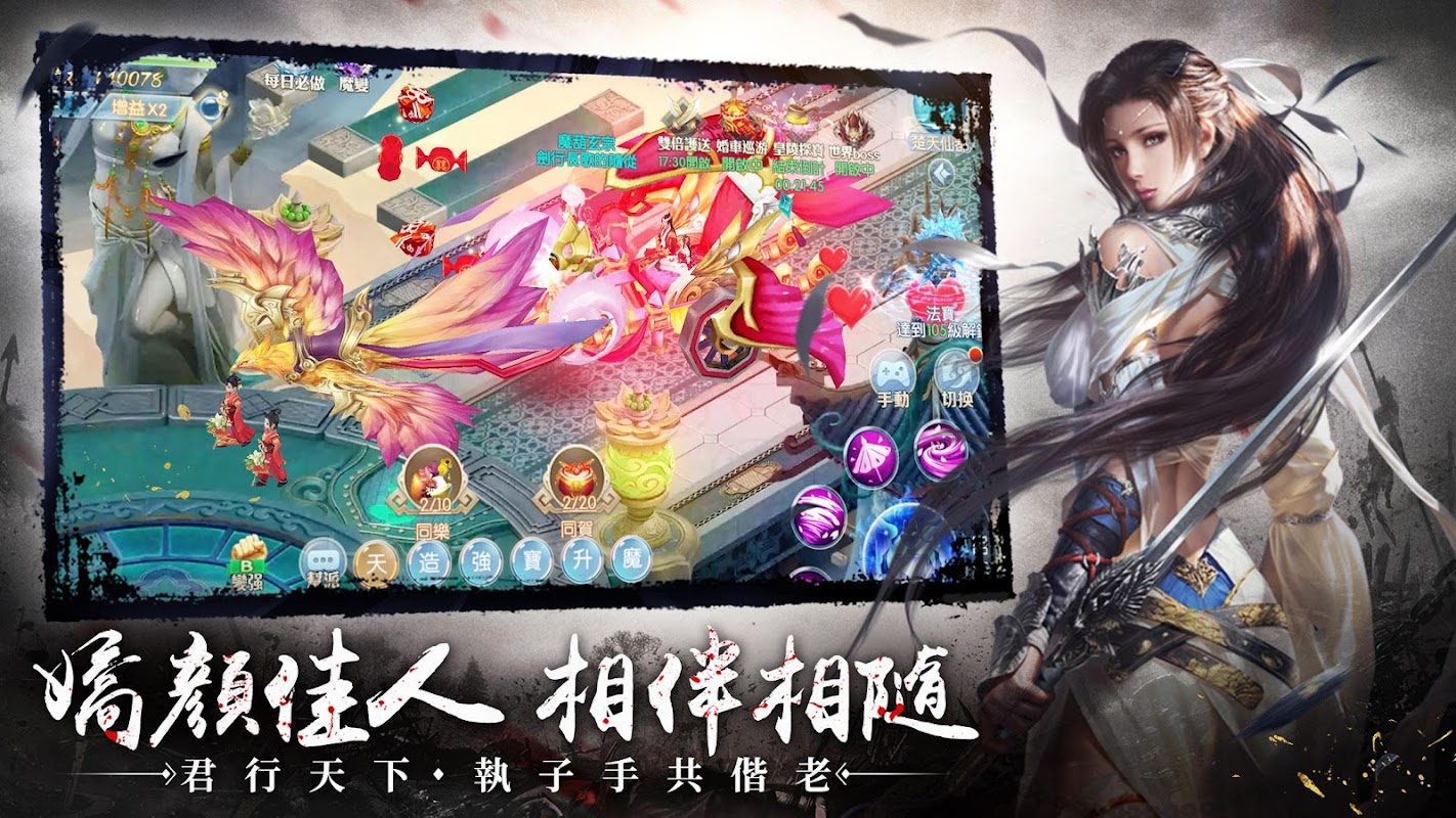 門派絕技、神兵鍛造、仙脈修煉、戰騎隨從、角色魔變、情緣副本、多人PVP,百種玩法任意探索,讓你體驗不一樣的仙俠世界。