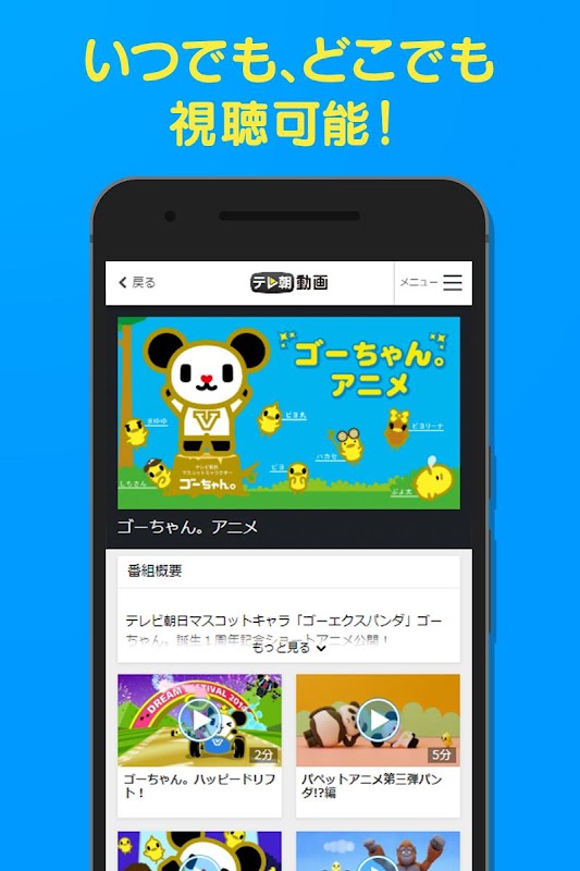テレビ朝日系で放送中の番組や過去に放送した番組、ネット限定オリジナル番組をPC・スマートフォンなどの環境でご視聴いただける動画配信サービスです。