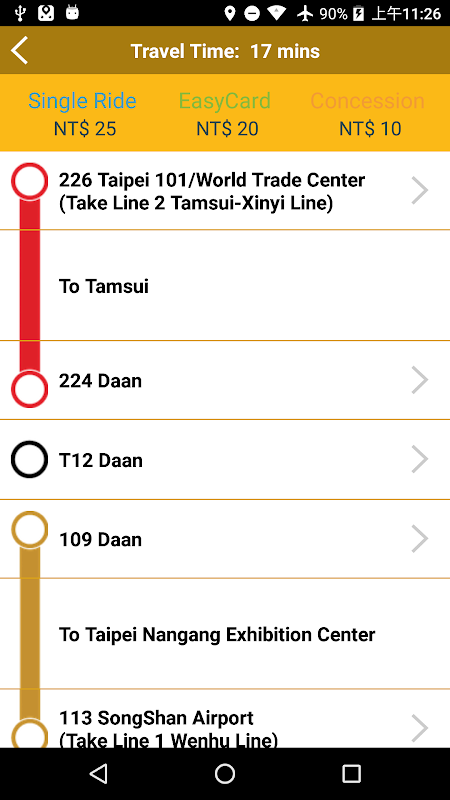 สะดวกในการตรวจสอบเส้นทางค่าโดยสารและเวลาของไทเป Jie