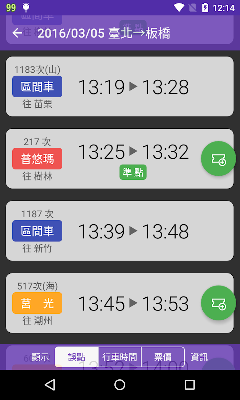 「票價資訊」─ 查看時刻表時,可同步查看票價資訊
