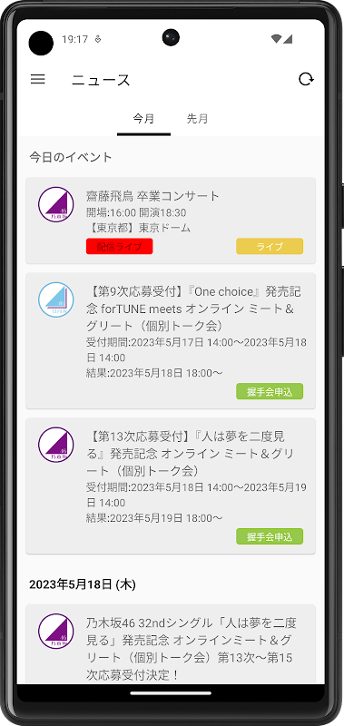 เป็นแอปผู้นำสำหรับกลุ่ม Sakamichi 3 ที่ครอบคลุมข้อมูลที่อัปเดตทั้งหมดของ Nogizaka46, Sakurazaka46 และ Hinatazaka46