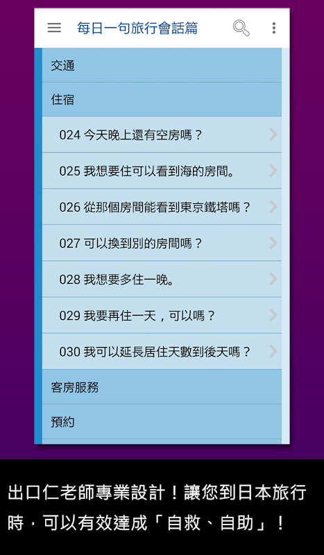 ข้อมูล 大家學標準日本語:每日一句 旅行會話篇 APK