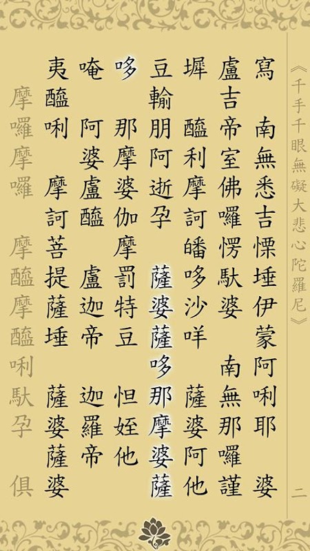 本程式提供了經咒念誦的功能,並且於每個章節經句章節細心的引導你,免除了紙本經本使用上,初發心的菩薩們常會遇到的問題,如跟不上、找不到等等的問題影響持誦的順暢。