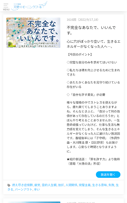 บางคนอาจมีภาพลักษณ์ของโปรแกรมทางศาสนาว่า "ล้าสมัย" "ลึกลับ" หรือ "มีคุณธรรม" แตกต่างจากภาพดังกล่าว Angel's Morning Call ให้ "คำแนะนำในการแก้ปัญหา" สู่ปัญหาเฉพาะตัวของคนยุคใหม่ในรูปแบบที่เข้าใจง่ายโดยใช้ศัพท์เฉพาะให้น้อยที่สุด