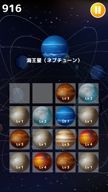 เปิดหูเปิดตาความสนุกขู่ ■■วิธีการเล่น■■ ปัดและเคลื่อนย้ายดาวเคราะห์ ชนกับดาวเคราะห์ดวงเดียวกันเพื่อทำให้ดาวเคราะห์ดวงใหม่สำเร็จ!