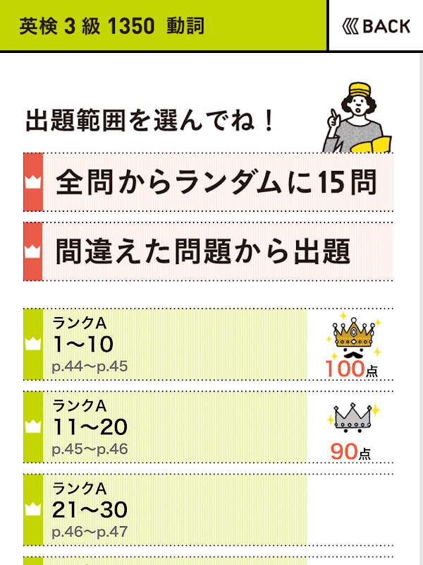 สร้างแบบทดสอบโดยแยกจากชุด "Eiken Rank Order" ที่วิเคราะห์ข้อมูลคำถามที่ผ่านมาของ Eiken อย่างละเอียด เช่นเดียวกับหนังสือ มันแบ่งตามระดับและธีม คุณจึงสามารถเรียนตามระดับของคุณได้