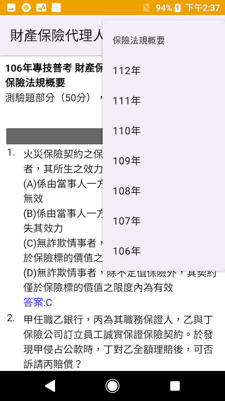 ข้อมูล 專技普考財產保險代理人歷屆試題2023 APK