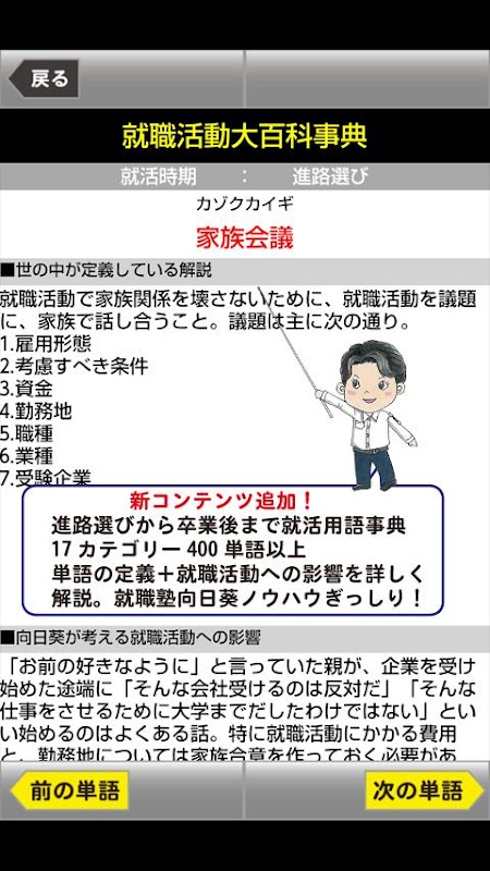 単語の定義だけでなく、就職活動への影響まで詳しく指導解説しています。