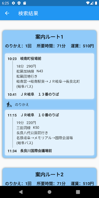 このアプリは、岐阜バスが運行するバス専用の乗り換え案内アプリです。