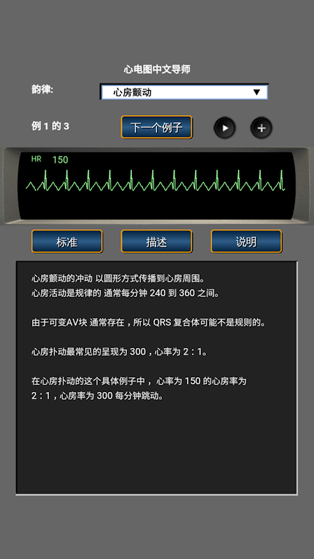 การระบุจังหวะคลื่นไฟฟ้าหัวใจของรูปคลื่นที่สแกนผ่านหน้าจอมอนิเตอร์เป็นเทคนิคที่แตกต่างจากการติดตามการเต้นของหัวใจแบบคงที่ แอพนี้สามารถพัฒนาทักษะทางคลินิกของคุณไม่ใช่แค่อ่านหนังสือเพราะคุณจะได้เรียนรู้การวินิจฉัยจังหวะขณะที่หน้าจอเคลื่อนที่แบบไดนามิก