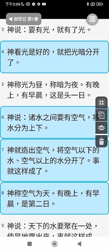 5. เมื่ออยู่ในหน้าพระคัมภีร์ ให้ลากปุ่มฟังก์ชั่นด้านขวาบนลงล่างเพื่อเปิดใช้งานฟังก์ชั่นอ่านอัตโนมัติ นอกจากนี้ยังมีฟังก์ชั่นขึ้นด้านบนด้วย!