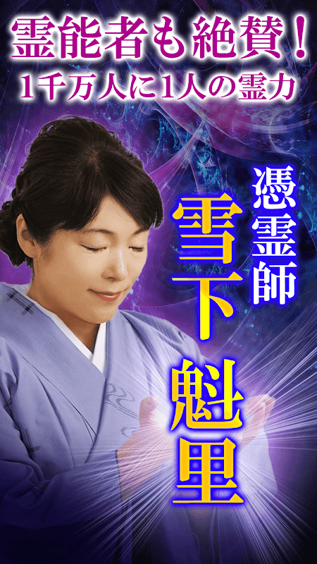 霊能者も絶賛。1千万人に1人の霊力を誇る占い師「憑霊師 雪下魁里」。2万5千人が鳥肌を立てた、神がかりの霊視力。有名占い館、有名電話占いでTOPクラスの実力を誇った伝説の占いをご体験ください。