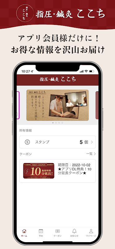 คุณสามารถรับข้อมูลล่าสุดและข้อเสนอของการฝังเข็ม shiatsu และ moxibustion Kokochi ผ่านแอพ นอกจากนี้ คุณสามารถตรวจสอบเมนูและช่วงเวลาที่ต้องการและจองจากสมาร์ทโฟนของคุณได้ตลอดเวลา ด้วยการติดตั้งแอพ คุณสามารถใช้ shiatsu การฝังเข็มและ moxibustion Kokochi ได้สะดวกยิ่งขึ้น