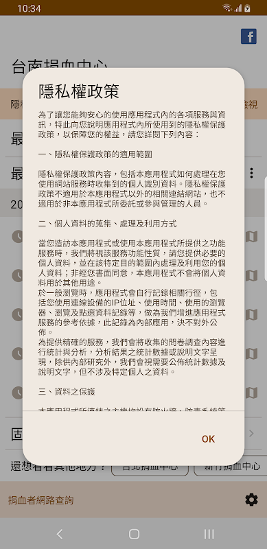 โปรแกรมนี้ไม่ได้เป็นโปรแกรมอย่างเป็นทางการดังนั้นจึงไม่สามารถให้ข้อมูลความเป็นส่วนตัวส่วนบุคคล APP เพียงตรวจสอบการบริจาคเลือดและกิจกรรมล่าสุดมีฟังก์ชั่นในการเข้าสู่ระบบและแบบสอบถามมันคือการให้การเชื่อมโยงอย่างรวดเร็วไปยังหน้าแรกของมูลนิธิเลือดไต้หวัน โปรดยกโทษให้ฉันสำหรับความไม่สะดวก