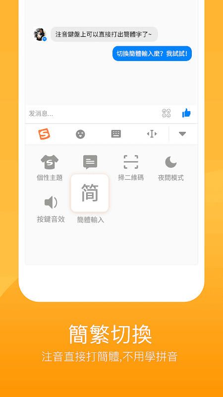 搜狗輸入法注音版:炫動主題、Emoji/顏文字/貼圖、聊天翻譯、移動光標、簡繁切換