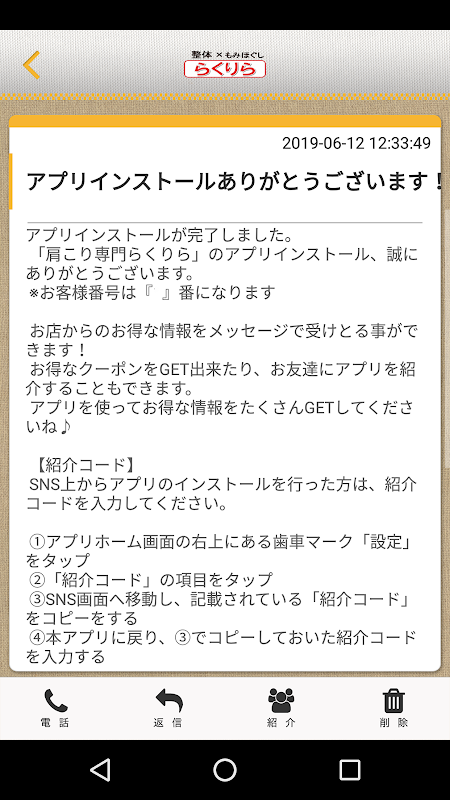 らくりらのアプリをSNSを通じてお友達に紹介する事ができます。