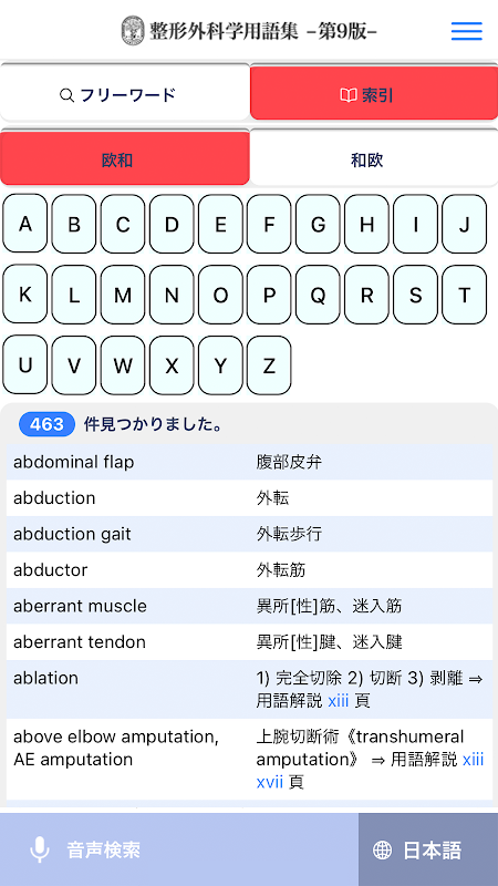 นี่เป็นแอปพลิเคชั่นสำหรับการดูอภิธานศัพท์ศัลยกรรมกระดูกและข้อ ฉบับที่ 9 (แก้ไขโดยอภิธานศัพท์ทางวิชาการของสมาคมออร์โธปิดิกส์ญี่ปุ่น)
