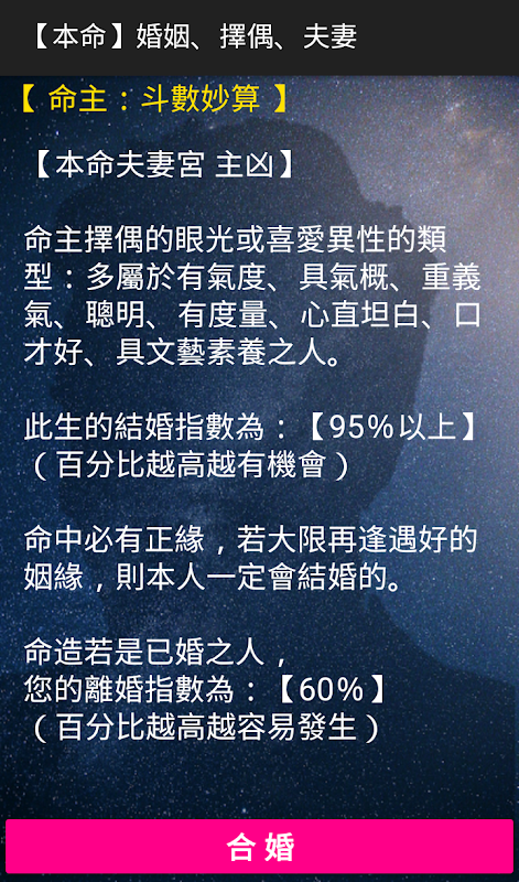 ข้อมูล 斗數妙算 (紫微斗數: 婚姻篇) APK