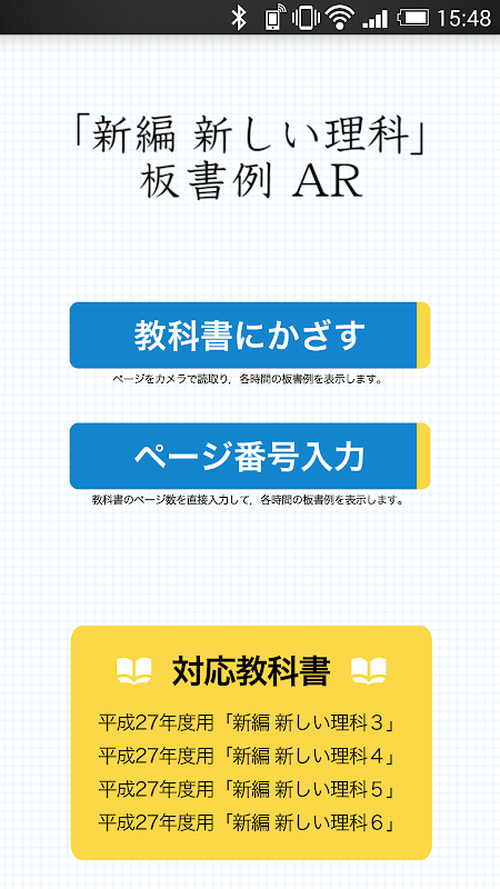 1 「新編 新しい理科」板書例ARアプリケーションを起動します。
