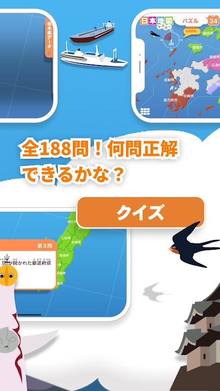 "Japan Map Master" เป็นแอปการศึกษาสังคมศึกษาที่ช่วยให้คุณได้รับความรู้เกี่ยวกับแผนที่ญี่ปุ่นในขณะที่สนุกสนาน! ด้วยโหมดสนุกสามโหมด: การสำรวจ ปริศนา และแบบทดสอบ คุณสามารถเรียนรู้อย่างครอบคลุมเกี่ยวกับที่ตั้งของแต่ละจังหวัด ผลิตภัณฑ์พิเศษ และสถานที่ที่มีชื่อเสียง มาสัมผัสประสบการณ์การเรียนรู้ที่ลึกซึ้งยิ่งขึ้นด้วยแอปนี้ที่ช่วยให้ทั้งเด็กและผู้ใหญ่ได้เรียนรู้เกี่ยวกับภูมิศาสตร์ไปพร้อมๆ กันอย่างสนุกสนาน!