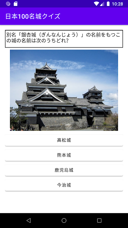 แบบทดสอบปราสาท แบบทดสอบเกี่ยวกับปราสาท ตั้งแต่ปราสาทยอดนิยม เช่น ปราสาทโอซาก้าและปราสาทคุมาโมโตะ ไปจนถึงปราสาทย่อย นอกจากนี้ยังสามารถใช้เป็นแหล่งศึกษาประวัติศาสตร์และหนังสือภาพได้อีกด้วย เป็นทัศนียภาพที่ชวนให้อยากปั่นจักรยาน