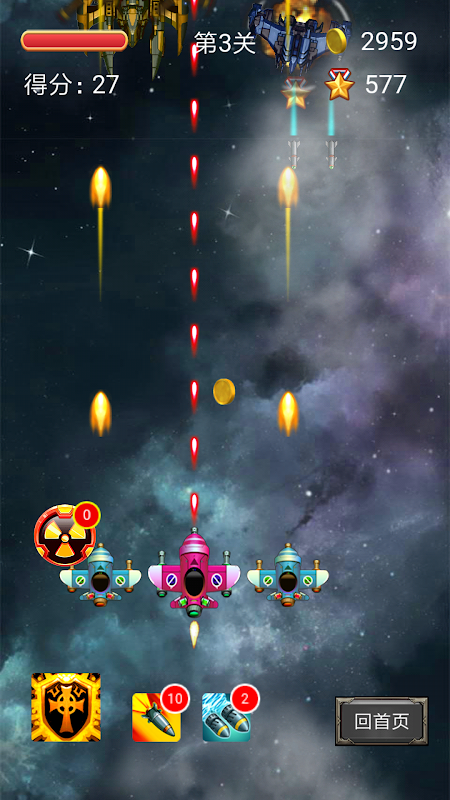 - Super Boss Battle: ศัตรูมีขนาดใหญ่มากจนไม่สามารถอยู่เต็มหน้าจอได้ รอให้คุณมาท้าทาย! กำจัดมินเนี่ยนศัตรูทั้งหมดด้วย! ให้ปลอกกระสุนบินไปทั่วหน้าจอ! -