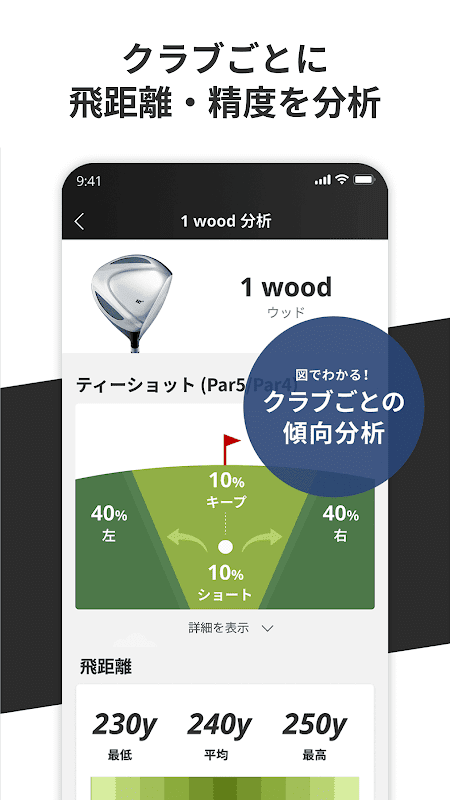 หากคุณลงทะเบียนไม้กอล์ฟที่คุณใช้เมื่อวัดระยะทางบิน คุณสามารถตรวจสอบระยะทางบินของแต่ละไม้กอล์ฟได้