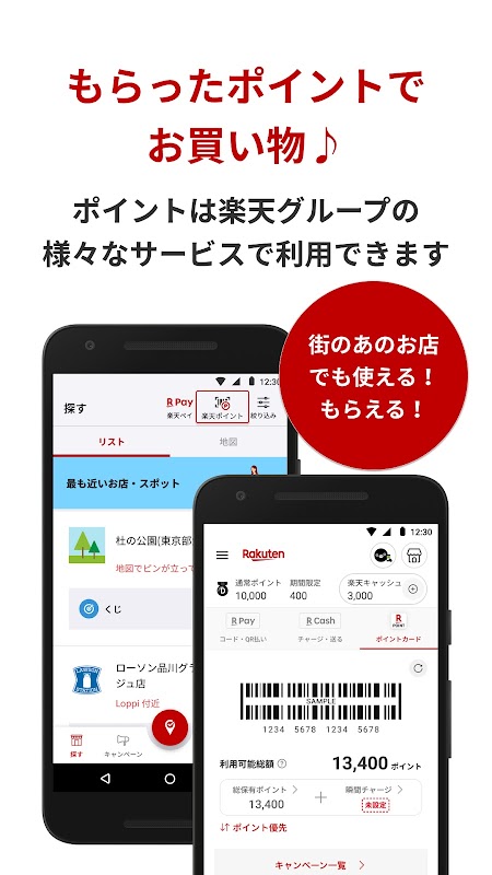 ข้อมูล 楽天チェック お店に行くだけで楽天ポイントが貯まる APK