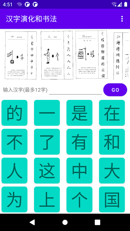 วิวัฒนาการของตัวอักษรจีนและการประดิษฐ์ตัวอักษรมีอินเทอร์เฟซการสืบค้นที่ใช้งานง่ายเพื่อสืบค้นวิวัฒนาการของตัวอักษรจีนเหมาสคริปต์ปกติสคริปต์รันสคริปต์ประทับตรา คุณสามารถฝึกไคติ