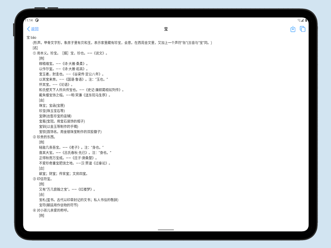 พจนานุกรมภาษาจีนเป็นเครื่องมือการเรียนรู้ภาษาจีนระดับมืออาชีพที่ประกอบด้วยสัทศาสตร์ ความหมาย ประโยคตัวอย่าง การใช้งาน และอื่นๆ เกี่ยวกับตัวอักษรและคำศัพท์ พจนานุกรมนี้ประกอบด้วยอักขระและคำศัพท์มากมาย พร้อมคำอธิบายอย่างละเอียดและประโยคตัวอย่างที่ชัดเจน เพื่อตอบสนองความต้องการของนักเรียนที่กำลังเตรียมตัวสอบ ครูที่กำลังเตรียมบทเรียน การค้นหาคำศัพท์สำหรับการเขียน และการสำรวจวัฒนธรรม ช่วยให้คุณเข้าใจแก่นแท้ของภาษาจีนได้อย่างแม่นยำ
