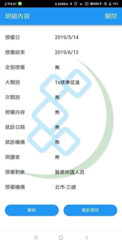 1.照護資料查詢:可查詢您授權的紀錄或取消授權的歷程紀錄。