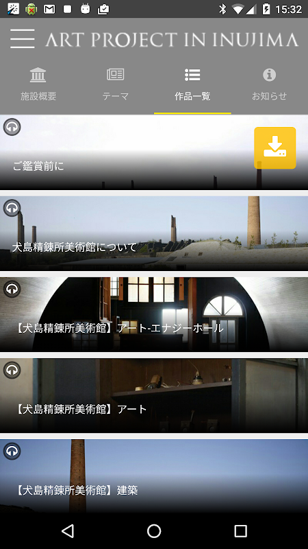 犬島の風景に溶け込んだ、現代アートの数々を音声でご案内するアプリです。音声ガイドを再生するには、犬島のチケットセンターにてチェックインを行ってください。