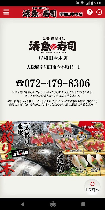 生簀回転すし活魚寿司 岸和田今木店(岸和田市今木町)のお持ち帰り専用注文アプリです。