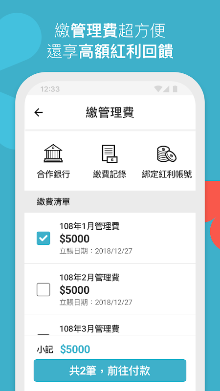 ออกแบบมาเพื่อชุมชนโดยไม่เสียค่าใช้จ่ายรวมถึงฟังก์ชั่นค่าธรรมเนียมการจัดการการชำระเงินด้วยบัตรเครดิตครั้งแรกคุณยังสามารถเพลิดเพลินกับการจ่ายเงินปันผลสูง การแจ้งเตือนการมาถึงของเมลการประกาศของชุมชนการส่งข้อความเฉพาะผู้ใช้บริการบ้าน ฯลฯ ทำให้ผู้จัดการชุมชนและผู้อยู่อาศัยใช้งานได้ง่ายและสร้างสภาพแวดล้อมการอยู่อาศัยที่ชาญฉลาดปลอดภัยและสะดวกสบายด้วยกัน