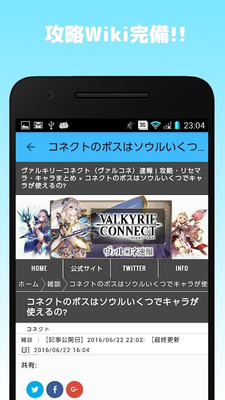 もう、ヴァルキリーコネクトの最新攻略情報をブラウザで見る必要はありません!読みたい記事を1タップするだけの超簡単操作!神まとめリーダー!!