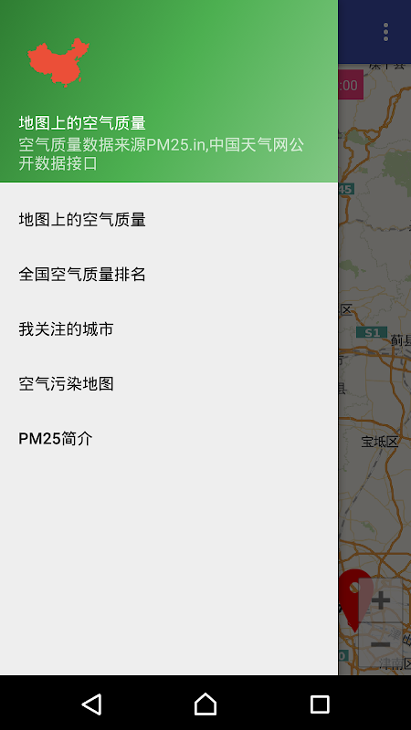 收集全国主要城市空气污染指数,根据城市位置,在地图上显示相应污染指数,点击图标显示详细信息。