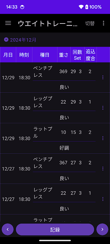 筋トレ 記録帳 筋肉トレーニング 24.11.81