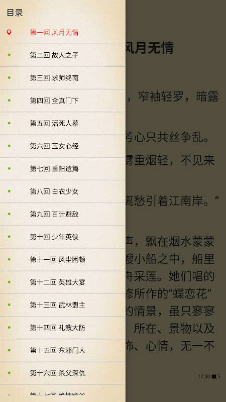 功能簡約而完整,有完整的目錄,讀書時的背景也是多選的,總有壹款適合妳的眼睛,音量鍵作爲上下翻頁鍵,繁體簡體之間的切換,亮度可調,字體大小可調,翻頁效果有多種多樣的。
