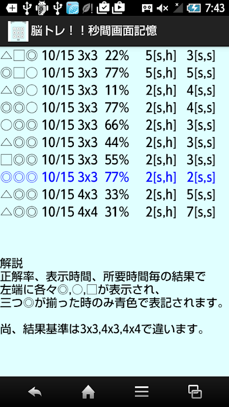 選択したり、表示時間の変更や過去のゲーム結果も確認可能としました。