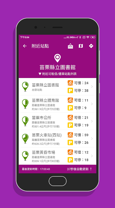 รองรับข้อมูลการแชร์จักรยาน/สถานี e-bike ในพื้นที่เหมียวลี่