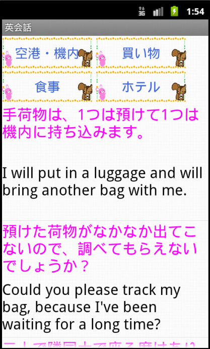 英単語、英会話のみ欲しい方はこちらのアプリを、その他いろいろな機能も欲しい方は「りすさんの便利帳」をお試しください