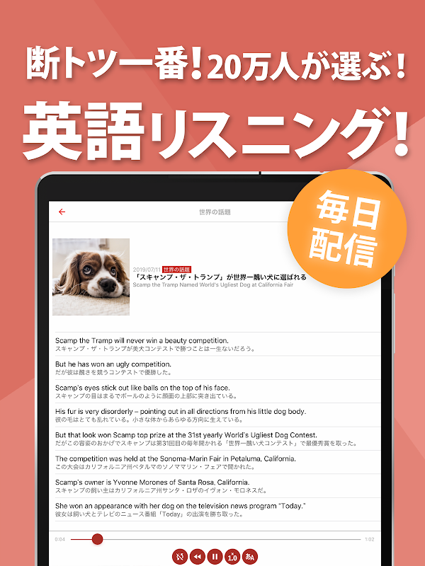 人気の本アプリ「英語リスニング - 英会話や英単語、英語ニュースの聞き流し勉強アプリ」をこれからも宜しくお願い致します!