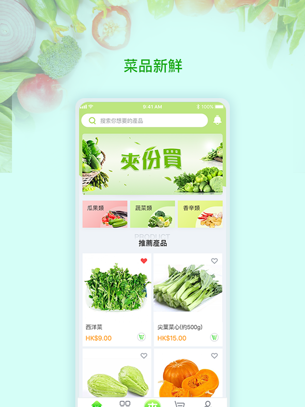 此Apps為了讓廣大的家庭用戶,可以購買到我們提供的新鮮,安全,有營養的蔬菜和食材。用戶可以通過Apps直接單獨購買我們的蔬菜。也可以通過屋苑夾單的模式,多人夾單去採購我們的蔬菜。希望客戶可以享受到便利的購買的同時,也能買到新鮮安排的蔬菜。EN: